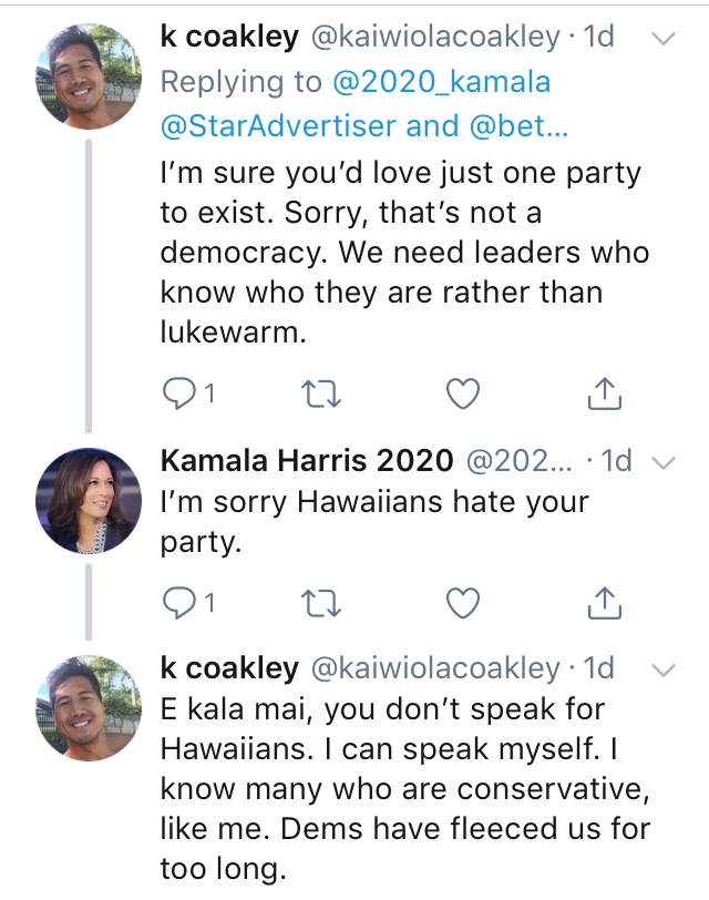I told her it was going as well as could be expected. I then expressed to her the negativity that one uncovers when diving into the deeper layers of politics, rarely seen by the public on a superficial level. I mentioned to her that I'd observed shades of racism and misogyny from the "far-right" in the Hawaii GOP.